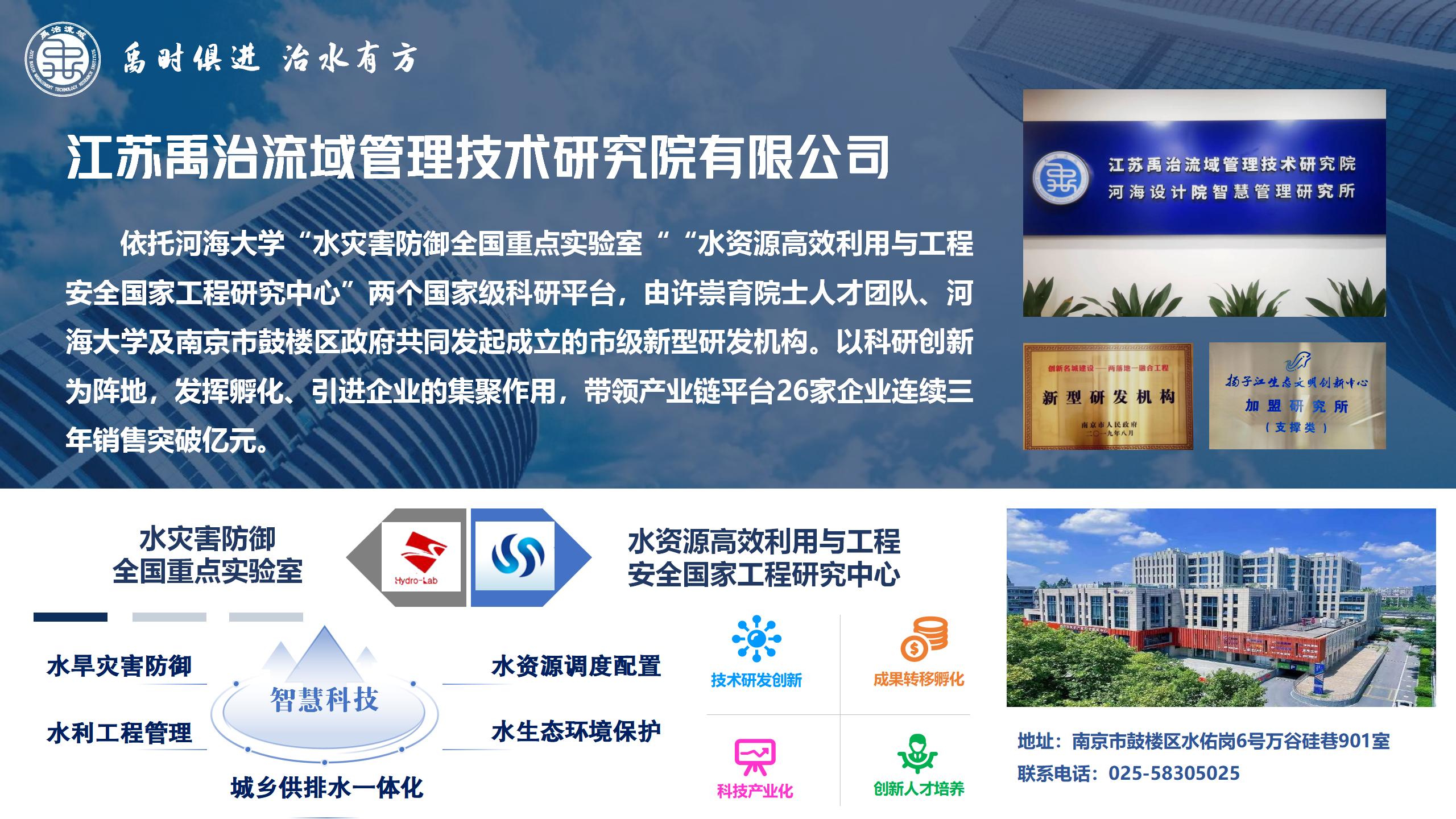 江苏禹治流域管理技术研究院有限公司(以下简称禹治研究院),成立于2018年10月。依托河海大学“水灾害防御全国重点实验室““水资源高效利用与工程安全国家工程研究中心”两个国家级科研平台,由许崇育院士人才团队、河海大学及南京市鼓楼区政府共同发起成立的市级新型研发机构。现有员工30余名,其中,外籍院士1名、教授3名、副教授1名、博士2名、硕士4名,均为本科队上学历,研发人员占总人数的52%,正高级工程师1名、高级工程师1名、工程师3名、助理工程师2名。禹治研究院以科研创新为阵地,发挥孵化、引进企业的集聚作用,带领产业链平台26家企业,打造数字化、信息化、智慧化水管理全过程规划、设计、研发、集成、运维全产业服务链。